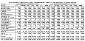 Security, sanitation, accreditation, and utility charges are also included to ensure smooth daily operations across the campus. This ensures that students don’t just pay for classes but also for facilities that make their stay in the university conducive and safe.